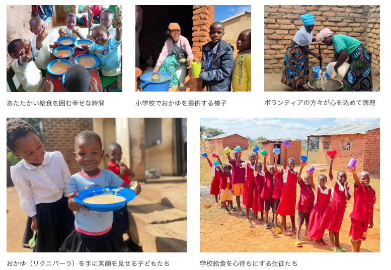 現地で提供されている学校給食は「リクニパーラ」と呼ばれるおかゆです。マラウイの主食であるとうもろこしを粉末にし、砂糖を加えてお湯で溶いたものが基本ですが、国連世界食糧計画(WFP)が推奨する必須栄養素も含まれており、成長期の子どもたちにとって重要な栄養源となっています。